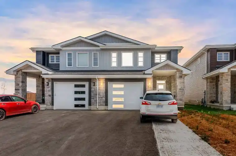 Welcome to 229 Superior Drive in Lakeside Ponds – Amherstview, Ontario! This popular Barr Homes model, the “Sapphire”, is an incredibly spacious semi-detached home that boasts 1,800 square feet of finished living space with 3 bedrooms and 2.5 bathrooms. Upon entering the home you will find a welcoming ceramic tile front foyer with closet space and a 2 piece powder room as you make your way into the open concept kitchen area. The kitchen features new appliances, a gorgeous backsplash, and quartz kitchen countertops including the grand island, great for hosting/entertaining. Just off the kitchen you will kind a mudroom with access to the garage that has an automatic opener for easier access. On the second level is where you will find the laundry room and 3 generous sized bedrooms including the primary which has it’s own walk-in closet and 4 piece ensuite. The unfinished basement has a 3 piece rough-in and gives you full range of creativity allowing you to finish the space however you would like! Lastly, the fully fenced backyard lets you privately relax as you sit on the 12′ x 12′ deck taking in the morning sunrise or evening sunset. Other features of the home include a 5′ wide stamped concrete pad which allows you to get two cars in the driveway side by side, blinds on every window, AND the hot water tank is OWNED! Do not miss out on your chance to own a stunning Barr Homes build here in the beautiful Lakeside Ponds!