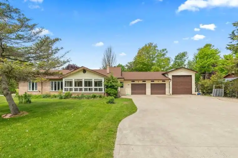 Enjoy a quiet lifestyle in the beautiful lakeside community of Point Clark! This brick bungalow offers great appeal on a generous corner lot, just a short distance from Lake Huron. The impressive triple wide concrete driveway leads to an attached three-bay garage, with one featuring a 12-foot overhead door perfect for storing a boat, trailer, or extra vehicles. With over 1,700 square feet, this expansive two-bedroom home offers an impressive amount of space with an obvious option for a third bedroom and offers large windows, hardwood flooring, solid oak cabinetry, and built-ins. A heated backyard sunroom with walkout to the rear deck, along with a three-season enclosed porch, provide extra living space to enjoy. Granite kitchen counters are a modern touch, and the recent installation of 50-year lifetime shingles (2022) on the house and garages offers peace of mind for the next owner. Stay safe, secure, and comfortable through any outage with the peace of mind of a whole home Generac standby generator, automatically powering your home when you need it most! Experience the ease and comfort of single-level living in a manageable property. Tremendous potential for modernization. Located just 1 km from popular public beach access perfect for catching world-class sunsets and enjoying time by the lake.