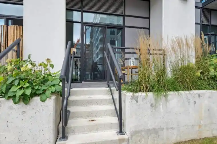 Welcome to this gorgeous terraced unit at the desirable Backyard Condos, conveniently located just north of the Queensway. Enter either via the front lobby with concierge, or directly to your unit from the courtyard through your beautiful private terrace, giving it a townhouse feel. Perfect patio space for quiet enjoyment with a coffee, to hop on your bike or to take the dog for a quick walk. Ideal for a home cook, upgraded chef’s kitchen with large island, beautifully custom shaker cabinets and stainless appliances. Comfortable living room overlooks green space while feeling private. Bedroom features large walk in closet. High ceilings throughout, ensuite laundry, parking and locker. Building features gym, dog grooming area, children’s play room, party room. Right next door is a convenience store, pharmacy and health care centre, with Bell Manor Park up the road. Only an 8 minute bike ride to the Martin Goodman Trail taking you right into the city’s core. Nearby you’ll find easy access to TTC, Sobeys, lots of dining options and a short distance to the lake. Perfect for either a first time buyer or investor, this well maintained unit is a blend of urban sophistication offering a great city lifestyle in a quiet community setting.