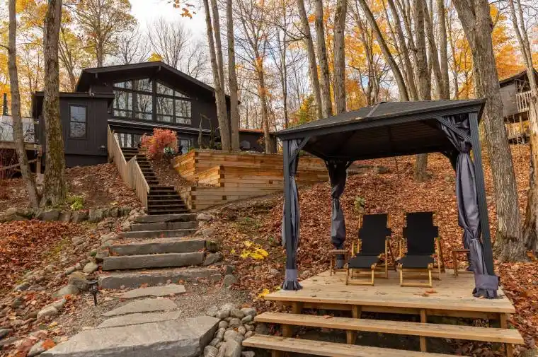 Every so often you come across a property that instantly feels like home – a place where families gather, laughter echoes across the water, and every detail reflects thoughtful care and quality. Welcome to 305 Salmon Lake Road, a beautifully upgraded, turn-key, year-round retreat on coveted Salmon Lake. Set on a large, gently sloping lot surrounded by mature trees, stone pathways, and multiple outdoor living areas, this exceptional property blends luxury, comfort, and Muskoka charm. The grounds are kid-friendly, meticulously maintained, and filled with inviting spaces for entertaining and relaxation. The 3-bedroom, 2-bathroom main cottage offers over 1,300 sq ft of bright, open living space with stunning lake views. The fully equipped kitchen opens to a spacious deck with dining for six and a built-in BBQ, while the living room features a wall of windows and a cozy propane fireplace. At the water’s edge enjoy a hard-packed sandy beach, deep-water docking, and multiple lounging areas capturing long lake views. The grounds also include a hot tub, fully equipped outdoor kitchen and pizza oven, a stylish bunkie, gazebo, children’s treehouse, and firepit, creating endless opportunities for relaxation and fun. The oversized garage has been fully insulated, refinished, and beautifully styled, transforming the upper level into a bright and comfortable guest suite. Additional recent upgrades make this property completely turn-key and ready to enjoy as is, in every season. Whether you’re seeking a private family getaway or a strong four-season investment, this property delivers the perfect Muskoka lifestyle- beautifully updated, exceptionally maintained, and ready to enjoy from day one.