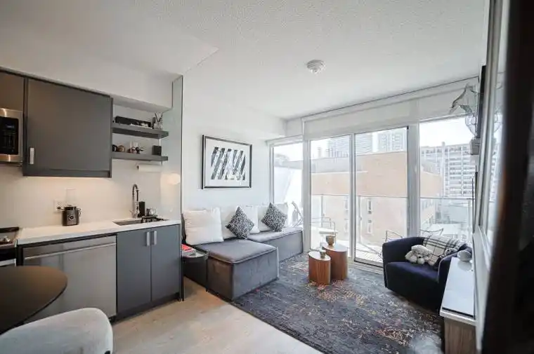 Stunning south-facing 1-bedroom + den suite with floor-to-ceiling windows, custom designer upgrades, and wide-plank flooring throughout. Features a modern kitchen with full-size stainless steel appliances, quartz island, and high-end dishwasher. Spa-inspired bathroom with rain shower and massage jets. Enjoy a full-width private balcony with city views, a spacious den with built-ins, and in-suite laundry. Prime Location Steps to subway station T, hospitals, TTC, shops & dining.-TMU, U of