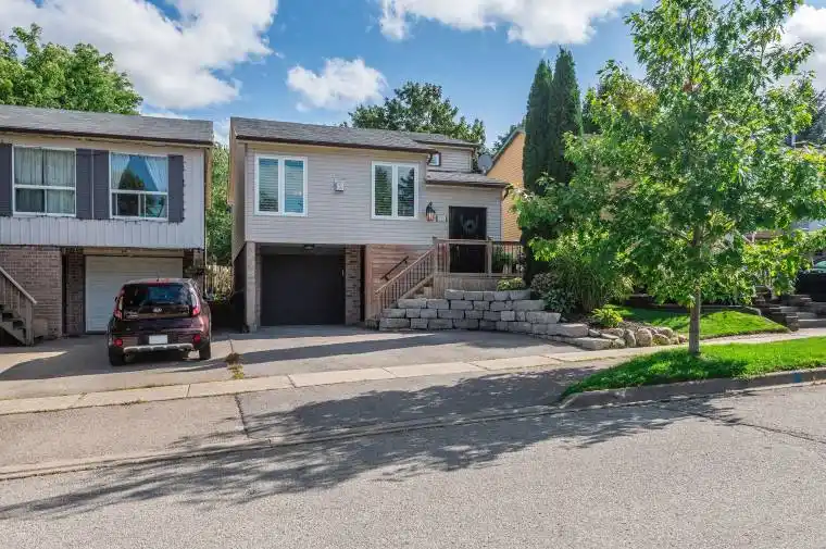 This is one home you don’t want to miss! This completely updated raised bungalow is tucked away on a quiet crescent close to shopping, restaurants, and schools. Freshly painted and upgraded top to bottom, this home offers peace of mind with nothing with left to do but move in and relax. From the moment you arrive, manicured perennial gardens set the tone for the pride of ownership throughout. Inside, every detail has been thoughtfully updated with timeless, high-end finishes. Hardwood flooring and California shutters flow through the main level. The chefs kitchen features abundant cabinetry, a pantry, granite counters, tile backsplash, glass cooktop, and matching GE Profile appliances. Overlooking counter seating, the dining area, and great room, this kitchen makes entertaining effortless. The great room is anchored by a striking stone fireplace, flanked by oversized windows with charming bench seating that fill the space with natural light. Down the hall, past the updated 2-piece bathroom, is the primary suite, a true retreat! This oversized bedroom offers a walkout to the deck, an extra-large closet, and space for sitting or reading. The spa-like ensuite includes a double vanity with stone countertops and a glass walk-in tiled shower, another example of the top-to-bottom updates that make this home feel brand new. The lower level offers a separate entrance, kitchenette, and a 4-piece bathroom. Two generous bedrooms with large above-grade windows provide plenty of natural light, ideal for in-laws, guests, or rental potential. Outside, a two-tier deck provides multiple sitting areas with room to dine, lounge, and barbecue. Surrounded by mature trees, perennials, and a cozy fire pit, the backyard is the perfect place to unwind. This home truly leaves nothing to do but move in and enjoy.