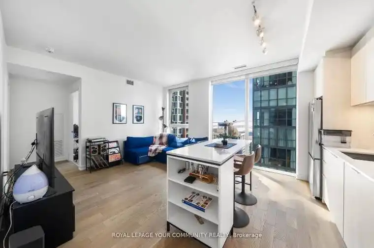 Amazing opportunity to live in a modern condo built by Great Gulf! This 2-bedroom, 2-bathroom suite features a functional split-bedroom layout and upgraded engineered flooring throughout. Located on a high floor offering stunning lake and downtown views. Enjoy the vibrant Entertainment District lifestyle surrounded by the city’s best restaurants and cafés. Boasting 9-ft ceilings, upgraded full-size stainless steel appliances, a movable island, double-door refrigerator, and installed window blinds. Exceptional amenities include a party room with bar and fireplace, social lounge with dining area, spacious fitness and yoga studio, podium terrace, rooftop deck, and more.
