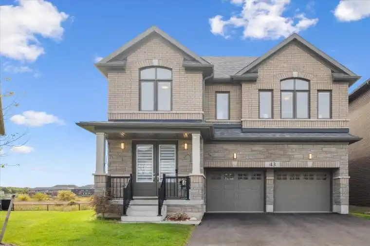 This exquisite, nearly new two-year-old detached residence showcases exceptional craftsmanship, thoughtful upgrades, and modern elegance throughout. Meticulously maintained, the 5-bedroom home is perfectly positioned on a premium pond-backing lot in one of Cambridge’s most sought-after neighbourhoods. The property features an oversized backyard that opens directly onto tranquil green space, offering breathtaking permanent views and ultimate privacy. Step inside to a bright, open-concept main floor designed for contemporary family living. The inviting living room features a cozy fireplace and large windows that flood the space with natural light, creating a warm and welcoming ambience. The main level also includes a spacious library, a formal dining area, and a Selba designer kitchen – a true chef’s delight – complete with a large island, quartz counter tops, upgraded backslash, Bosch gas cook top, built-in oven and microwave, Garburator, and sleek custom cabinetry. Elegant finishes continue throughout, highlighted by smooth ceilings, hardwood flooring, and a custom oak staircase with a titanium stain. Upstairs, the second floor features soft carpeting and a luxurious primary suite with a generous walk-in closet and a spa-inspired 5-piece en- suite showcasing a freestanding tub and glass shower. Modern conveniences include a high-efficiency heat pump, General Aire air cleaner, electric car charging point, and a BBQ gas line. The unfinished basement with a rough-in offers excellent potential for future customization. Located minutes from Conestoga College and Highway 401, this remarkable home combines style, comfort, and convenience in a premium setting. Don’t miss your chance to own this move-in ready residence loaded with builder upgrades and surrounded by nature’s beauty.