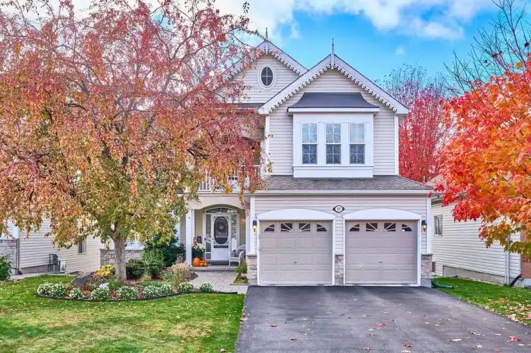 This executive home, nestled in coveted Kanata Lakes, boasts over 4,000 sqft of gorgeous living space, with a fully finished Walk-Out Bsmt opening to Insmill Park. NO REAR NEIGHBOR! The interlocked corridor leads you into the foyer, the airy 9′ ceilings grace the main level w/open living & dining rooms featuring crown moldings and a dazzling chandelier. The family room beckons w/a double-sided gas fireplace casting an inviting glow; it flows effortlessly into the sun-room w/breathtaking backyard & pond views, where you can read or savor tea as sunlight streams in. The Chef’s Kitchen boasts granite countertops, high-end appliances, a central island with a wine rack, a full-wall pantry and a sun-drenched nook with accesses to the deck overlooking delight Park views year-round. A graceful, curving hardwood staircase leads you to the upper level with 4 generously sized bdrms. The vast LOFT, a true enchanting space to unwind, with French doors to the front balcony overlooking a stunning Ornamental Crabapple tree that bursts with pink blossoms and turns to cheerful red berries! The luxurious primary suite boasts a serene sitting area and double closets, a lavish 5-pc ensuite w Jacuzzi tub, shower, and dual vanities with quartz counters and blissful lighting. The main bath offers a private water closet, an extended double vanity with a quartz countertop. The walk-out bsmt offers a Home Theater, Exercise Room, Stone Faced Gas Fireplace and a 2pc powder-room. Step out to the fully fenced Southern yard w rear gate, expensive patio, gazebo and a Heated In-Ground Saltwater Pool with a mesmerizing Waterfall – a perfect spot to host your favorite people! This charming home, cherished by its original owners, within the boundaries of top-tier schools, makes it an optimal destination for growing families. A leisurely stroll along the rear path will take you to nearby cafes and shops. Welcome to this dream home –a place where life unfolds with effortless grace and endless joy.