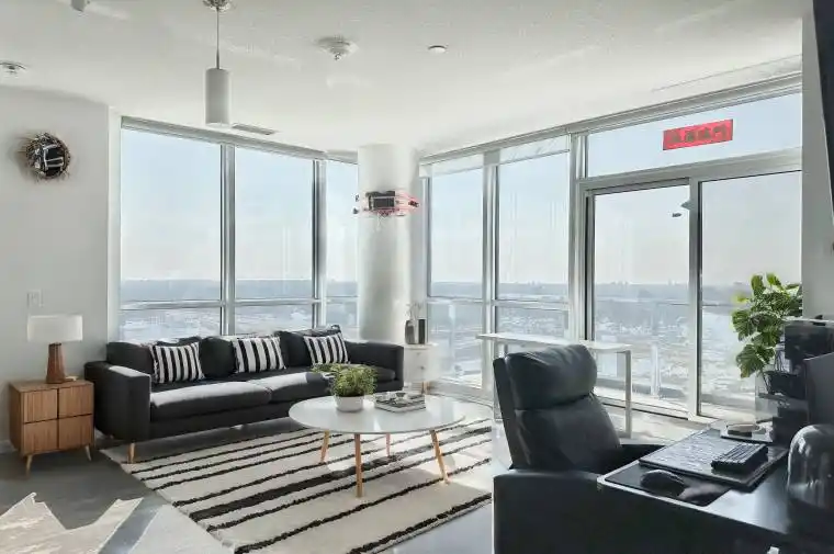 Welcome to this bright and spacious penthouse corner unit, offering 2 bedrooms and 2 bathrooms with stunning southeast exposure. Enjoy 731 sq ft of living space with no neighbors upstairs for added privacy and tranquility. The large 134 sq ft corner balcony provides unobstructed views of the city skyline and CN Tower, perfect for relaxing or entertaining.This penthouse features sleek laminate flooring throughout, with custom blinds and an abundance of natural light flooding the space. The kitchen is fully equipped with built-in appliances, including a dishwasher, rangehood, and stainless steel fridge. Residents enjoy a range of premium amenities, including a 24/7 concierge service, a party room for entertaining, a fully-equipped gym, steam room, plunge pools, hot tub, and a BBQ area for outdoor gatherings. Conveniently located just steps from Fairview Mall, Don Mills Subway Station, parks, schools, groceries, and quick access to highways 404 and 403, this unit is a blend of comfort and convenience. Partially furnished with a bed, white console, and single chair, the unit also comes with 1 underground parking spot and 1 locker for added storage. Don’t miss out on the opportunity to live in this luxurious penthouse unit with breathtaking views and ultimate privacy! Please note place is virtually staged! Place will be cleaned prior to occupancy!
