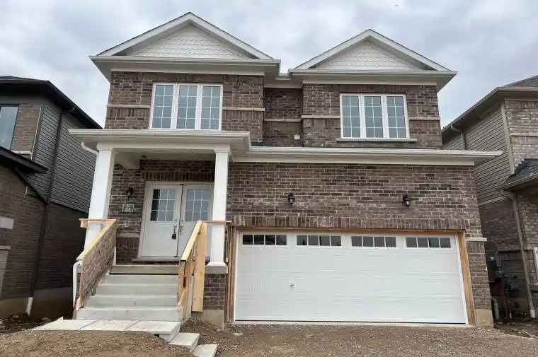 Gorgeous 1-year-old detached home in a newly built community, just steps from the Grand River in Paris. This beautiful house offers lots of natural light, an open-concept main floor with hardwood flooring, 9 ft ceilings, an oak staircase, and a modern kitchen with a large breakfast island and quartz countertops. The breakfast area overlooks the stunning Grand River. The master bedroom has two walk-in closets and a 4-piece ensuite. The second floor features a media room, spacious bedrooms, and convenient laundry. The home also includes an unfinished walk-out basement and garage access to the house. A must see!