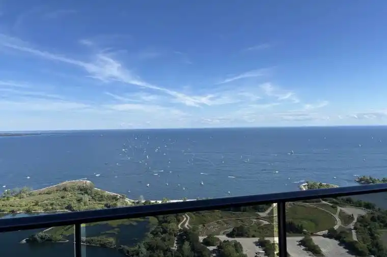 Unobstructed Lake View! Corner Unit on the 44th Floor! Experience the ultimate resort lifestyle in this absolutely stunning luxury condo at Vita On The Lake, offering 1170 sq ft of interior space plus a massive 300 sq ft exterior wrap-around balcony, complete with hotel-style amenities. This spacious unit features 2 Full Ensuite Bedrooms and 1 powder room (2 Bed, 3 Bath total). It includes one underground parking space and one locker, convenient ensuite laundry, plus high-end built-in appliances, including a built-in fridge, dishwasher, and wall oven. The expansive 300 sq ftbalcony offers a panoramic 270-degree view overlooking Lake Ontario and the CN Tower. Enjoythe waterfront trail and bike path as well as a variety of restaurants right at your doorstep.