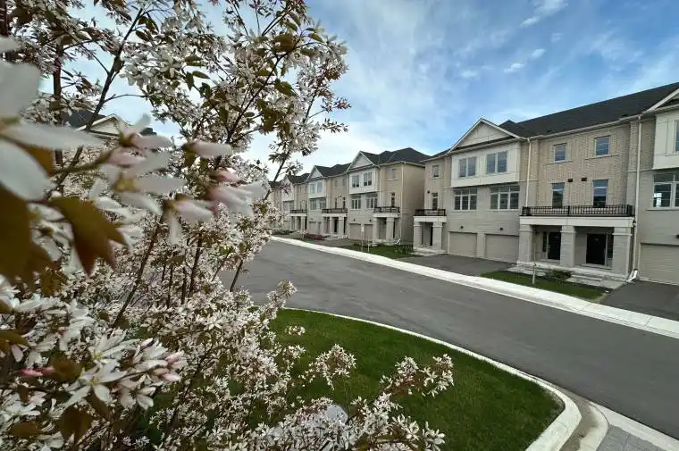 NEW, NEVER LIVED IN & MOVE-IN READY! Discover this prestigious brand-new 4-bedroom, 3.5-bath Traditional Townhouse featuring a wide, open-concept layout filled with natural light. Crafted to perfection, offers extra-large modern kitchen with Caesarstone countertops, sleek finishes, and tall upgraded cabinetry. Main floor includes bedroom with ensuite-ideal as guest suite or home office-plus side-by-side washer and dryer. Second floor showcases spacious open-concept kitchen, dining, and living area with private balcony overlooking your own backyard-perfect for entertaining. Powder room adds convenience. Marvelous stained oak staircases and smooth high ceilings for refined modern atmosphere. Central air conditioning and heating provide year-round comfort – and A/C is included in price. Upstairs, primary suite offers walk-in closet and luxurious ensuite with tall glass-enclosed shower and sunlit vanity. Two additional bedrooms and full bathroom complete top floor. Enjoy private garage plus driveway parking for two vehicles. Double-upgraded stainless-steel appliance package-fridge, stove, dishwasher, microwave hood, washer, and dryer-included. Garage features an automatic door opener with wall-mounted controls and remote access. Protected by comprehensive Tarion Warranty for peace of mind. Why buy resale when you can own brand new? Ideally located near schools, healthcare, gyms, shopping, dining, coffee shops, and places of worship, with easy access to HWY 401 & 407, marina, and conservation areas-perfect for families or first-time buyers .Don’t miss this opportunity! HST included (subject to rebate). Commission inclusive of tax! Open House on weekends and easy booking weekdays.