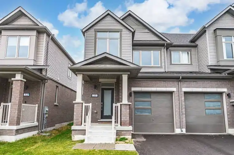 BRAND-NEW END UNIT TOWNHOME WITH MODERN UPGRADES & QUICK CLOSING AVAILABLE! Move right into this stunning brand-new end-unit townhome, part of the highly desirable Ventura South Townhome Collection, offering 1,650 sq ft of beautifully designed living space with 3 bedrooms and 3 bathrooms. Priced to sell and ready for quick closing, this home delivers exceptional value and peace of mind with a 7-year Tarion Warranty. Located near HWY 400, the South Barrie GO Station, walking and cycling trails, top-rated schools, shopping, and dining, with quick access to golf and Friday Harbour Resort offering year-round recreation. Curb appeal impresses with a charming covered front porch and a stylish front door with a frosted glass insert and transom window that fills the entryway with natural light. With no sidewalk in front, enjoy parking for two vehicles in the driveway. Upgraded laminate and tile flooring enhance the main level, laundry room, and bathrooms, offering durability and a modern aesthetic. The open-concept kitchen showcases quartz countertops, white cabinets, a tile backsplash, stainless steel chimney-style range hood, French-door refrigerator, electric range, dishwasher, and a large island with breakfast bar seating for five. The adjacent great room offers a bright, welcoming space with a walkout to the partially fenced backyard featuring wood privacy fencing along the rear and side lot lines and a convenient gate. Completing the main level is a powder room and a laundry room with garage access, a side-by-side Whirlpool washer and dryer, overhead storage cabinets, and a clothing rod. Upstairs highlights upgraded laminate flooring throughout the hall and bedrooms, a 4-piece main bathroom with a quartz-topped vanity, and a primary bedroom with two walk-in closets and a 3-piece ensuite. Central air conditioning, quality upgrades, and modern finishes throughout make this new #HomeToStay a standout choice in one of Barrie’s most convenient neighbourhoods!