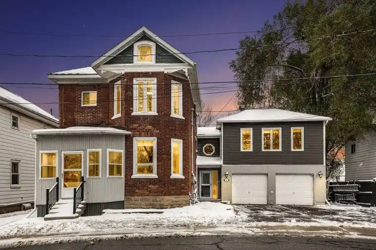 Welcome to this beautifully maintained red brick Victorian, situated directly across from the Smiths Falls Basin of the historic Rideau Canal, a UNESCO World Heritage Site. This property offers classic character in a location that keeps you connected to everything. One of the standout features is the double heated attached garage. Brick Victorians rarely offer this kind of modern convenience. Here, you get exceptional workshop space, access to the private and fully fenced backyard, plus a full family room above with a gas fireplace and views of the canal. It’s a unique combination of heritage architecture and functional everyday living. Inside, the home offers four generous bedrooms and two full baths, second floor laundry and a third floor unfinished attic, perfect for additional storage space. The private backyard offers a new rear deck with a wooden shutter-style privacy screen and a new storage shed. The oversized driveway fits seven vehicles and includes a gate that opens to expanded parking for a boat or RV. A public boat launch is only moments away for instant access to the water. The location delivers an active lifestyle, with the option to enjoy a peaceful and private backyard space. Walk to Victoria & Centennial Park, Turtle Island, and Murphy Park Public Beach. Enjoy festivals, skating, swimming, paddling, and year-round community events just steps from your front door. Downtown is just a short walk with its shops, restaurants, and waterfront paths. A rare chance to own a brick Victorian with the garage, space, and lifestyle features that almost never come together in one property.