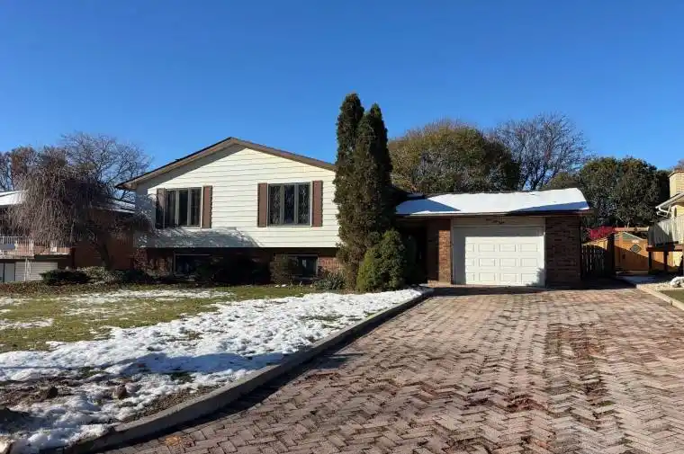 Spacious raised bungalow in a desirable area of STRATHROY, close to parks, shopping, and the hospital. This spacious home features newer flooring on most of both levels and has seen plenty of fresh paint. The main floor offers a generous living and dining area, three comfortable bedrooms, and two full bathrooms including a 3-piece ensuite. The primary bedroom also features a walkout to a wood balcony overlooking the large, fully fenced yard. The lower level includes a spacious family room with a brick wood-burning fireplace and Murphy bed, a games room with wet bar, and a convenient 2-piece bath. Many windows have been updated, including good-sized ones in the lower level. The single-car attached garage provides inside entry to the foyer, and the oversized driveway easily fits four or more vehicles. Appliances are included. Brand new furnace and central air as of Nov. 24/25