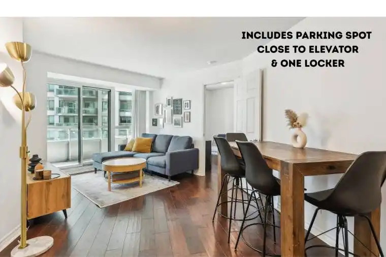 Priced To Sell! Welcome to your future home as you indulge in ultimate Toronto city living at Infinity 3 Condos! Imagine waking up to breathtaking partial views of Lake Ontario and the glittering Toronto skyline, all from the comfort of your open concept move-in ready suite. This meticulously cared for unit has been freshly painted and boasts two full bedrooms with full closets and proper doors, separated by the living and dining area, and rounded out with two full 4-piece bathrooms for added convenience for your family or guests. Enjoy your morning coffee or hosting dinners on your private balcony that is accessible by both the living room and primary bedroom. Beyond the unit itself you’ll find first-class Property Management and Concierge Security staff that are friendly, helpful, and quick to help. Enjoy luxurious amenities, including convenient guest suites perfect for hosting out-of-town visitors. Stay active in the state-of-the-art gym, indoor pool, or shoot hoops on the basketball court. You’ll have more amenities than you know what to do with from the games rooms, conference room, outdoor BBQ garden, & more! Nestled in the heart of downtown, you’ll have unparalleled access to everything the city offers. The TTC and GO are a quick step away, and the Gardiner Expressway provides effortless access east and west out of the city. Iconic landmarks like the CN Tower, Scotiabank Arena, Rogers Centre, and the PATH surround the neighbourhood. Immerse yourself in a vibrant neighborhood surrounded by bustling markets, diverse restaurants, and trendy shops. Enjoy worry-free living with low maintenance fees, thanks to exceptional property management that covers water, and heating/AC. This is more than just a condo; it’s a lifestyle!