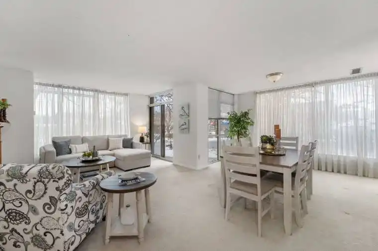 Welcome to Highland Green, one of Aurora’s most desirable and well-managed condominium communities. This expansive 1,419 sqft. ground-level corner suite offers exceptional value for first-time buyers, downsizers, renovators, or investors looking to personalize a spacious home in an unbeatable location. Inside, the layout is impressive: two oversized bedrooms, two full bathrooms, a full dining room, a large living area, and a spacious kitchen with endless potential to modernize. Bright windows bring natural light throughout, and the private walk-out patio extends your living space outdoors, ideal for relaxing, entertaining, or enjoying the surrounding mature neighbourhood. Highland Green residents enjoy premium amenities, including a car wash station, gym, sauna, social room, and a library with a walk-out terrace. The building is known for its friendly community atmosphere and exceptional management. The all-inclusive maintenance fees are one of the biggest highlights and cover heat, hydro, water, air conditioning, building insurance, cable TV, internet, and parking, giving you truly worry-free living. Located in the heart of Aurora, you’re steps to shops, restaurants, parks, golf, walking trails, transit, medical facilities, and the Aurora GO Station. Enjoy the charm of a small town with the convenience of urban amenities, excellent walkability, and quick access to Hwy 404. A spacious layout, unbeatable main-floor access, fantastic amenities, and the ability to customize to your taste make this a standout opportunity in one of Aurora’s most established buildings.