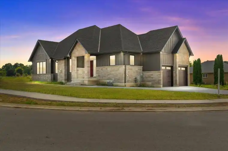 Welcome to Crossfield Estates by Banman Developments! This newly completed home showcases exceptional quality, craftsmanship, and upscale finishes throughout. Offering 1,808 sq ft, this thoughtfully designed 3-bedroom, 2-bathroom bungalow features custom cabinetry, quartz countertops, stunning hardwood floors, and a cozy gas fireplace. A full unspoiled basement leaves endless possibilities for additional finished space should you desire. The attention to detail continues outside with beautiful exterior architecture, including stone skirting and board and batten siding, poured concrete driveway and walkway for a refined and sophisticated look. Set on an generous sized lot, the home is located in a quiet community this is approx. 30 minutes from both London and Sarnia and only 20 minutes to Lake Huron that offers some of the best crystal clear water and sand beaches in all of Ontario. With 29 generously sized estate lots, many backing onto Arkona Fairways Golf Course, this is a rare opportunity to live in luxury surrounded by nature. A variety of floor plans and lots are available to suit your lifestyle. Come explore the possibilities today!