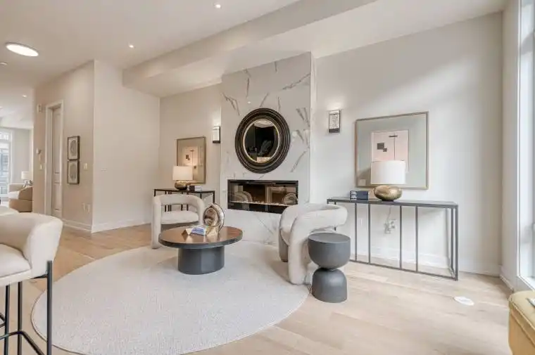 Welcome to this brand new townhouse. This stunning double car garage residence offers refined living across three thoughtfully designed levels. Step inside and you’ll be greeted by White Oak hardwood flooring that flows seamlessly throughout the home, complemented by a solid wood staircase with elegant wrought iron spindles. Smooth ceilings and pot lights throughout. 4 bedrooms and 4 bathrooms upgraded with quartz countertops.The ground-floor bedroom includes a 3-piece ensuite perfect for in-laws, visitors, home office or rental potential. The second floor showcases an expansive open-concept living space with 10-foot ceiling.The family room features a floor-to-ceiling electric fireplace, living room boasts a custom-designed modern media wall with built-in ambient lighting and walkout access to balcony. The fully upgraded kitchen is a showstopper highlighted by handleless, soft-close cabinetry in stylish modern tones, ceiling-height cabinets with display shelves and accent lighting, a designer backsplash, and an oversized quartz waterfall island that doubles as a breakfast bar. From the kitchen, step out onto a spacious terrace ideal for outdoor dining, summer lounging, or entertaining under the stars. Upstairs, the third floor offers a serene retreat with 9-foot ceiling. The primary bedroom with French door, bedside pendant lights, and a 5-piece ensuite featuring electric heated floor. 2nd bedroom features walk-out balcony, perfect for quiet mornings or evening relaxation. Rooftop terrace with BBQ Gas Hookup. Whether hosting friends, enjoying sunset views, this rooftop terrace offers the ultimate outdoor living. Combining thoughtful upgrades, luxurious finishes, and a coveted location close to top-rated Richmond Hill High School, Lake Wilcox, Highway 404, GO Train Station, Richmond Green Park, Costco and the Oak Ridges Community Centre. Don’t miss the opportunity to make it yours.