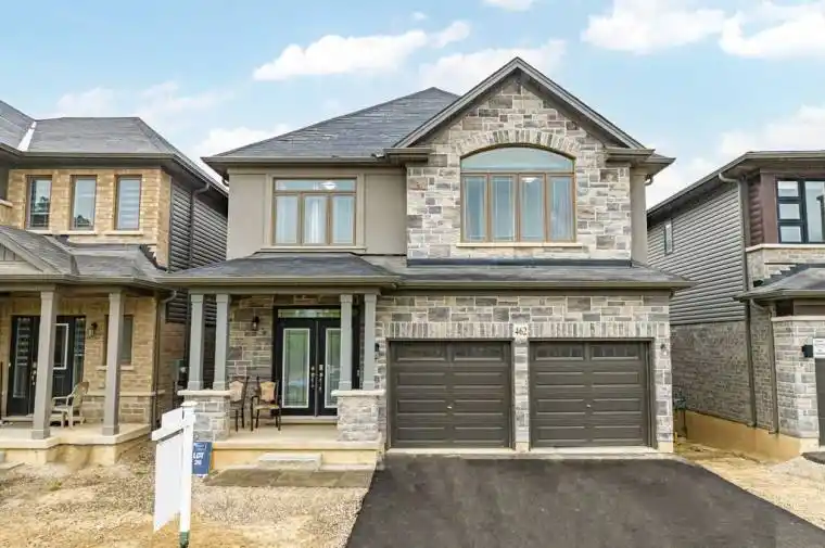 Welcome to this beautiful 4-bedroom, 4-bathroom detached home in the highly sought-after West Brant community. This modern 2-storey home features a bright, open-concept main floor with hardwood flooring, a spacious great room with a bay window, and an expansive kitchen and dining area perfect for family living and entertaining. Upstairs, you’ll find generously sized bedrooms including a large primary suite with a walk-in closet and bay window, plus three additional bedrooms each with convenient bathroom access. The full walk-up basement offers excellent potential for future finishing. Situated on a deep lot with an attached double garage, this home is ideally located near parks, schools, and amenities in a thriving, family-friendly neighbourhood. Vacant and move-in ready with flexible possession.
