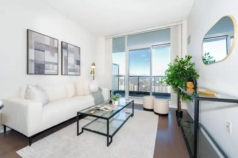 Modern, renovated one-bedroom suite in Emerald City with impressive oversized private balcony and unobstructed north views. Features include 9-foot ceilings, new stainless steel appliances, granite countertops, designer glass backsplash, and floor-to-ceiling windows providing abundant natural light. Open concept living and dining area with efficient, no-waste layout.Located above Don Mills Subway Station, steps to Fairview Mall and minutes from Highways 401, DVP, and 404. Building amenities comprise 24-hour concierge, indoor pool, hot tub, spa, fitness centre, yoga studio, party room, guest suites, outdoor terrace, pet grooming room, and ample indoor visitor parking. Wi-Fi enabled building. Ideal for those seeking convenience, modern design, and excellent transit access in a prime North York location.