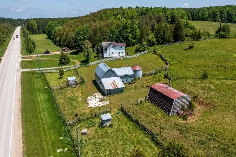 24 acre hobby farm just west of Markdale on a paved road with natural gas. The property also has frontage on a sideroad making access to the 15 acres of crop land convenient. There is a hobby barn and storage building. The 4 bedroom farmhouse has one main floor bedroom, an eat-in kitchen and a spacious family room with a walkout to the deck and back yard. Great little farm package. Good country views from the back of the farm where a new set out buildings could be built.