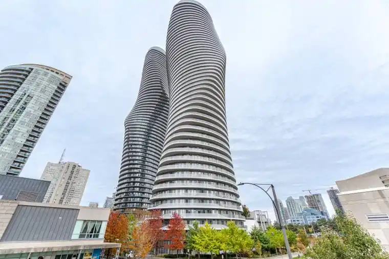 Experience luxury living at the iconic Marilyn Monroe Condos in the heart of Mississauga, offering over 30,000 sq. ft. of state-of-the-art amenities including pool, gym, and concierge services. This bright and spacious 2-bedroom, 2-bathroom suite features an open-concept layout with granite countertops, stainless steel appliances, floor-to-ceiling windows, and a wraparound balcony showcasing unobstructed panoramic views of the city. The unit also boasts laminate flooring throughout, a fresh new paint job, and custom feature wall. The open and airy layout makes entertaining a breeze while enjoying balcony access from the living room and both bedrooms. This building is located in the heart of it all steps to the upcoming HURONTARIO LRT, Square One Shopping Centre, restaurants, and much much more.