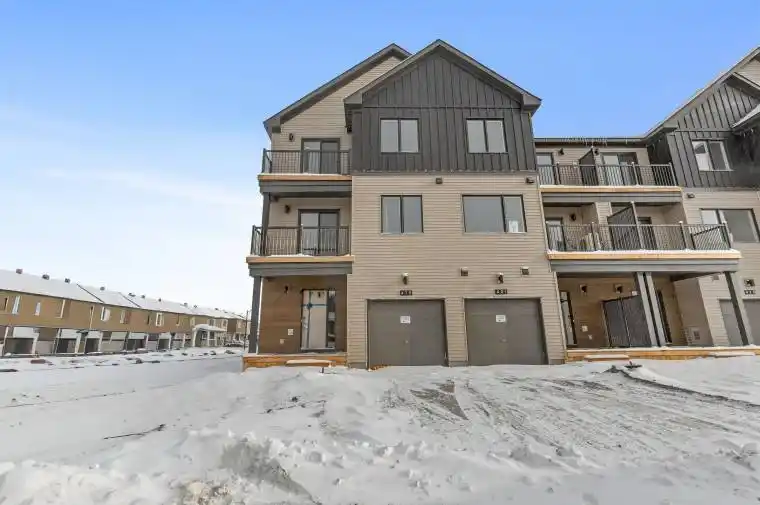 Discover upscale living in the heart of North Kanata’s desirable NorthWoods neighborhood with this pristine, newly built corner-unit townhome, representing the largest Bloom model by Mattamy. Spanning approximately 1,874 square feet of Energy Star-certified space, this four-bedroom, four-bathroom residence is perfectly tailored for modern professionals and couples seeking both luxury and flexibility. The layout is thoughtfully designed, featuring a convenient ground-floor guest suite complete with its own ensuite, while the main living area on the second level impresses with soaring ceilings, an open-concept flow, and a gourmet kitchen equipped with quartz counters, a pantry, and access to a breezy walkout balcony. Ascend to the upper level to find a dedicated laundry area and three primary-bedrooms, one private ensuites, another common full washroom, and an exclusive private balcony for serene relaxation. Practicality meets style with installed stainless steel appliances, an unfinished basement for ample storage, and parking for two vehicles between the garage and driveway. Situated just moments from the high-tech sector, March Road, Highway 417, and premier shopping and dining, this home creates a seamless blend of nature and urban convenience, further enhanced by significant perks including one year of complimentary Rogers high-speed internet and the rare financial advantage of having no hot water tank rental fees. Please call Vardaan Sangar – Ottawa Realtor at 819.319.9286 to book your next showing!