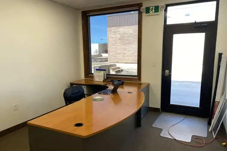 210 sq. ft. private office space in a high-traffic, in-town location. Features a separate entrance and a large window providing excellent natural light. Includes access to a kitchen, boardroom, and washroom. Ideal for a professional office or small business seeking a quiet, self-contained workspace with excellent visibility and convenient access.