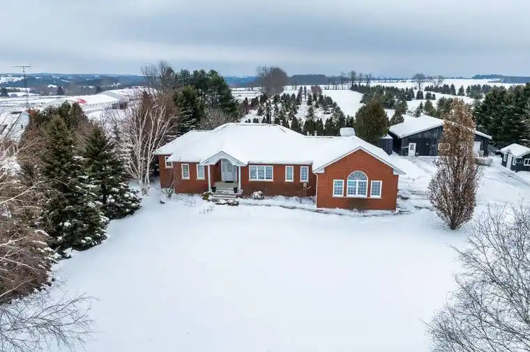 Welcome to 8495 Enfield Road. This is country living on the edge of town. A truly exceptional property! Located minutes north of Highway 407 and just east of the Oshawa Townline. All on a .86-acre lot with 214 feet of frontage with a western view of sunsets over farmland as well as privacy of a tree farm to the rear. This level lot features a heated shop 44’x32′ as well as a custom garden shed. This shop is finished on the interior and is ideal for the handyperson or storage. There is a huge, paved driveway with room for all the toys. Plus, a 40′ sea container with 9′ ceiling. Custom built all brick bungalow in 1999 by the original owner with quality and attention to detail. 1858sf as per MPAC and 9′ ceilings. Updated shingles in 2018. Spacious front foyer overlooks the great room with propane fireplace and 11’6″ cathedral ceiling. Open concept main floor with an updated kitchen in 2025. This dream kitchen has cabinets to the ceiling, built in appliances, 4’x8′ island and quartz counters. This kitchen was crafted by the owner from solid wood. Other features include pot lights, multiple pull out drawers and a coffee bar. Walkout from the kitchen to a composite deck with a gazebo. For entertaining there is a formal dining room with Wainscotting and crown mouldings. You can enter from the finished triple garage into the laundry room with second staircase to the basement, two-piece bath and features custom cabinets built in 2025. The primary bedroom has a walk-in closet and 5-piece ensuite bath with soaker tub. Hardwood floors and ceramic tile flooring throughout. The basement was finished in 2012 and features a rec room with fireplace, media room, office, two bedrooms, and a full bathroom. One bedroom has a walk-in closet. Features include laminate flooring, walnut wet bar with wine fridge, built in cabinets, and open oak stairs to the great room. Updated propane furnace and central air in 2017. 200-amp hydro service. Owned propane hot water tank and water softener.