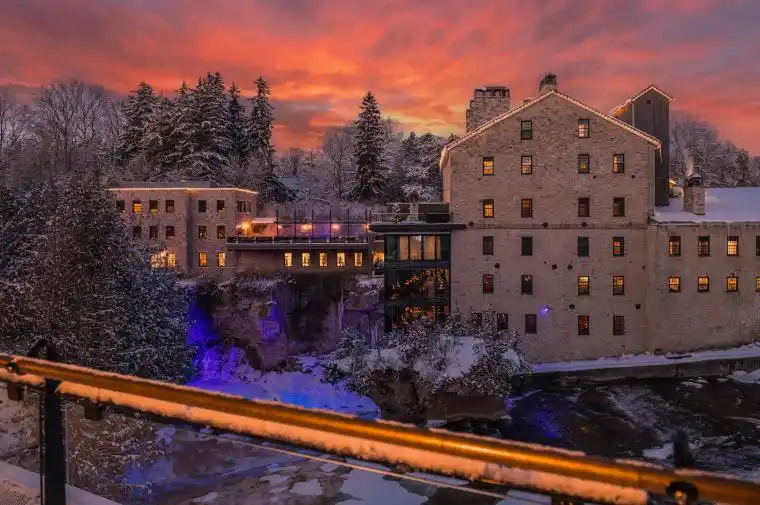 This special RIVERFRONT condo enjoys the PERFECT location overlooking the Tooth of Time and the Elora Mill – and amazing views of the Falls and Downtown Elora landscape. And of course, you get to listen to the soothing sounds of the river from your balcony.This luxury condo is a great option for a professional/professional couple – or would be a spectacular pied-a-terre to enjoy Elora & everything it has to offer. A nicely upgraded unit – from the Miele fridge/freezer to the heated bathroom floor. Lots of little touches. As a special bonus, your underground parking is a short one minute walk from your unit – no elevator required. Talking about convenience. The Elora Mill Residences are known for their unrivalled amenities – including concierge, amazing lobby and lounge area with coffee bar, beautiful garden courtyard, pool, fitness centre and more. And don’t forget this rather important fact – a short 3 minute walk away you will find yourself in Downtown Elora to enjoy the restaurants, pubs, cafes & shops.