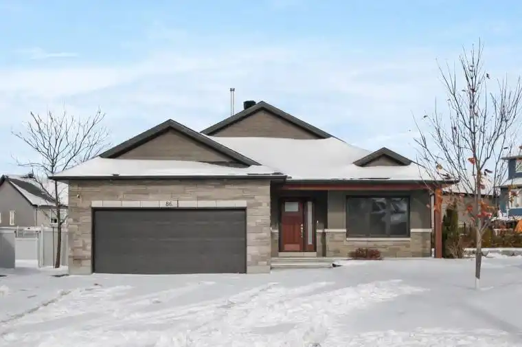 Experience luxury living in Mill Run, Almonte with this exceptional 4-bedroom, 3-bath bungalow, perfectly nestled on an expansive pie-shaped lot. Constructed in 2019, The McIntosh welcomes you with a striking front entrance and tiled foyer featuring ample closet storage and a stylish sliding barn door. A spacious front office, bathed in natural light, provides the perfect workspace or reading nook. Step into the heart of the home in a stunning Deslaurier-designed kitchen complete with granite countertops and premium stainless-steel appliances, seamlessly flowing into an open-concept dining and living room. Gather by the modern gas fireplace or enjoy effortless indoor-outdoor entertaining with 8 feet patio doors leading to multi-level decks and a backyard oasis. The main level boasts elegant hardwood barn-style flooring, laundry/mudroom with extra storage, two large kids bedrooms, and a crisp family bath. Also on the main floor is your private primary suite, a true retreat with generous proportions, a walk-in closet, and a spa-inspired ensuite. The finished basement extends the living space with a bright family room warmed by an additional fireplace, a fourth bedroom, full bath, and abundant storage solutions including an area for a gym. Parking is never an issue with an insulated and heated double garage plus a triple-wide, six-vehicle driveway. Enjoy a backyard designed for every lifestyle: a paved sports/basketball area, versatile decks for summer dining, a shaded patio, a salt-water heated above-ground pool, plus mature gardens and handy storage shed. This thoughtfully designed home blends everyday comfort with standout style. Located only minutes from Almonte’s vibrant core of shops & restaurants & amenities. This home provides the perfect balance of modern living and small-town charm. Don’t miss your opportunity to make it yours. Schedule your private tour today.