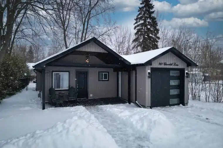 Stunning Turnkey Bungalow with Private Lake Simcoe Access!Welcome to single-level luxury living in this completely renovated 3-bedroom, 2-bathroom bungalow. Every detail has been thoughtfully updated, offering a modern, move-in-ready experience. The heart of the home is the open-concept living, dining, and kitchen area, featuring stunning quartz countertops including a large breakfast island, and sleek stainless steel appliances-perfect for entertaining.Escape to the spectacular primary bedroom retreat, boasting soaring vaulted ceilings, dual closets, and a spa-inspired 5-piece ensuite. Enjoy your morning coffee by stepping directly from the primary suite into the fully fenced backyard.Practicality meets style with a covered front porch leading into an oversized attached garage (with rear man door to the yard). Additional upgrades include updated flooring throughout, modern smart switches, a new furnace, and on-demand hot water (rental). The exterior is equally impressive with a large garden shed and plenty of privacy.Located for an exceptional lifestyle, this property includes private community access to Lake Simcoe and is just minutes from Willow Beach Waterfront Park. Enjoy easy access to schools, shopping, and the 404 extension for a seamless commute. Don’t miss out on this gem!
