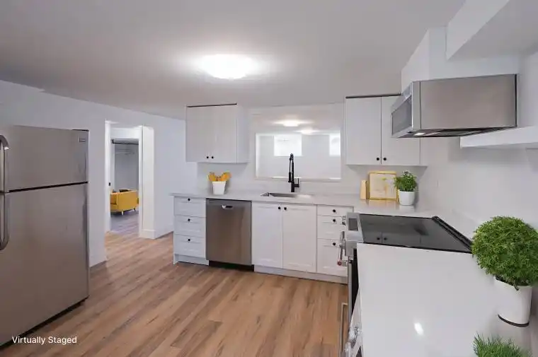 Beautiful +/- 950 sqft lower level, 2-bedroom plus office, 1 bathroom apartment in desirable Burlington location. Fully renovated with modern finishes, updated flooring, fresh paint, and a bright, functional layout throughout. Modern kitchen featuring quartz countertops and stainless steel appliances, including fridge, stove, dishwasher, and microwave. Two bedrooms plus a separate office, ideal for work-from-home or additional storage. In-suite laundry. Ductless wall-mounted A/C for independent cooling. Sound-proofed construction for added comfort and privacy. One dedicated parking space included. Storage shed available in spring for $25/month. Conveniently located close to GO Transit and bus route. Rent: $1,995/month. Tenant to pay own electricity (separately metered), $50 fixed monthly for gas, and 40% of water bill. Applications will require income documentation and full Equifax credit reports for all adult applicants.