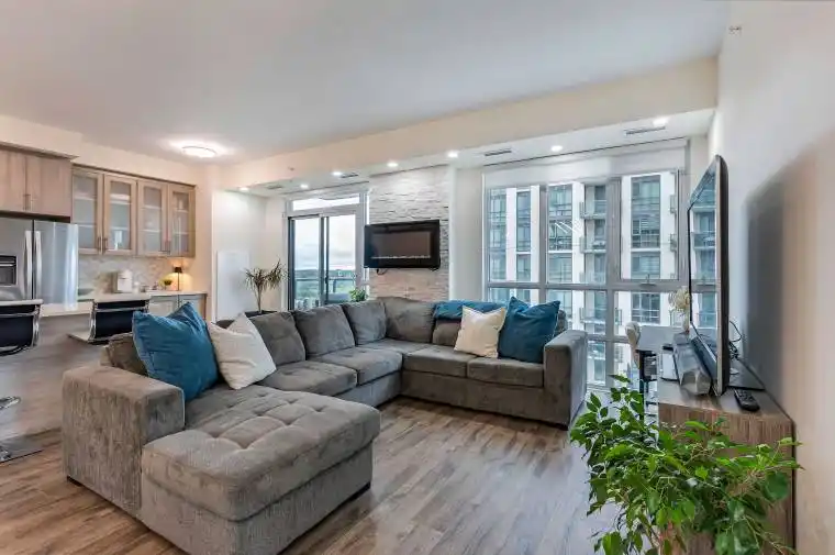 Welcome to 55 Yorkland Blvd S, Unit 503, a stunning turn-key condo offering breathtaking unobstructed southwest views of the lush greenbelt, enjoyed from a large private balcony. This beautifully designed open-concept suite features 2 spacious bedrooms, 2 full bathrooms, upgraded flooring throughout, 9-ft ceilings, pot lights, upgraded lighting, custom blinds on all windows, and floor-to-ceiling windows that flood the space with natural light. The chef’s kitchen boasts quartz countertops, a large centre island with breakfast bar, upgraded stainless steel appliances, and an extended pantry with built-in cupboards and matching quartz. The living area is enhanced by a stylish fireplace with a rock feature wall, while the primary suite offers a walk-in closet and glass-shower ensuite. Additional highlights include built-in storage and laundry, water softener, en-suite laundry, two parking spaces (one owned, one rented), and an owned locker conveniently located near the elevator. Ideally located minutes from Hwy 407, 427, 7, the GO Station, schools, transit, shopping, and trails-this exceptional condo offers the perfect blend of comfort, style, and convenience.
