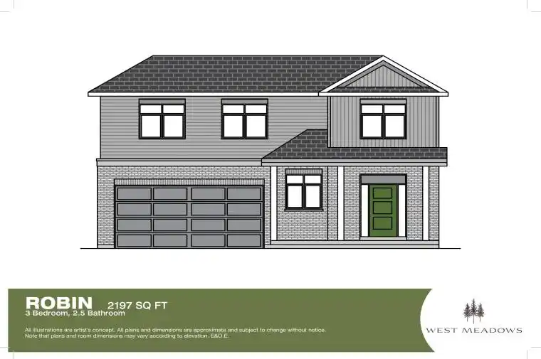 Welcome to the Robin model in the sought-after West Meadows community, ideally situated on a premium lot backing onto peaceful parkland and a scenic pond. This thoughtfully designed 2-storey home offers approximately 2,197 sq ft of well-planned living space with 3 bedrooms and 2.5 bathrooms, blending comfort, functionality and natural surroundings. The main level features a bright, open-concept layout with a spacious kitchen, island and walk-in pantry, flowing seamlessly into the dining area and a stunning living room with vaulted ceiling that enhances the sense of space and light. Large windows capture serene backyard views, creating a calm and inviting atmosphere. A main-floor primary bedroom offers convenience and privacy, complete with ensuite and walk-in closet. Upstairs, two generous bedrooms, a full bathroom and a versatile den or home office provide flexible space for family living, guests or remote work. The unfinished basement allows for future expansion and customization. Located in West Meadows, this home offers the rare combination of a nature-backed setting with easy access to town amenities, trails and everyday conveniences. An excellent opportunity to own a well-designed new home on a premium lot in one of the area’s most desirable new home communities!