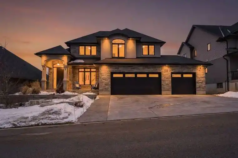 Welcome to 209 Boot Hill Rd, nestled in the sought-after Boot Hill enclave in Woodstock. This impressive 2-storey home offers 3 bedrooms, 3 bathrooms, and an attached 3-car garage. Step inside to an open-concept main floor filled with natural light, highlighted by a stunning cathedral ceiling and a gorgeous gas fireplace – perfect for relaxing or entertaining. The layout also includes a formal dining room, ideal for hosting family dinners and holidays. Upstairs, the primary retreat features a large walk-in closet and a luxurious spa-like ensuite. Two additional bedrooms complete the second level, along with a handy laundry chute to make everyday life a little easier. The bright walk-out basement offers endless potential with high ceilings, a cold cellar, and a bathroom rough-in already in place – create extra living space, a home gym, or even in-law suite potential tailored to your family’s needs.Enjoy smart, modern comfort throughout with a smart thermostat, Leviton smart switches, whole-home surge protection, and CAT5 wiring to the living area and second floor. Custom programmable Hunter Douglas window coverings in the family and dining rooms add both style and convenience. In the kitchen, you’ll appreciate the walk-in pantry, RO system to the sink and fridge ice maker, plus the setup for a natural gas stove and a 240V outlet. Outside, the lifestyle continues with beautifully landscaped front and rear yards, an irrigation system, outdoor lighting, and a garden shed with lighting. Unwind on the private lower patio under the balcony with a privacy screen, and entertain with ease thanks to the natural gas BBQ hookup and 17′ power awning on the balcony. Added peace of mind comes from a hardwired outdoor security camera system with DVR (no fees), an alarm system, and Yale/Nest electronic locks on both garage doors. A standout home in a standout neighbourhood – book your private showing today!