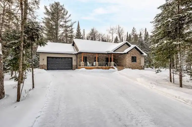 Welcome to this brand new executive bungalow by Matrix Construction, located in the desirable new Crimson Lane community in beautiful Port Sydney. Set on an acre, near the end of a quiet road, this home boasts exceptional curb appeal with neutral-toned stone and vertical vinyl siding, a large covered front porch, and a modern yet timeless aesthetic. Step inside to a spacious foyer that leads into the bright, open-concept living, dining, and kitchen area, ideal for daily living and entertaining. The living room features a natural gas fireplace with quartz accents, while the chef’s kitchen boasts a large island with breakfast bar seating and a walk-in butlers pantry offering additional storage. Off the kitchen, a walkout takes you to the screened-in Muskoka Room and deck with a natural gas BBQ hookup, perfect for summer evenings. The mudroom entry from the attached double car garage is both functional and stylish, with access to a 2-piece powder room and a beautifully appointed laundry room. The main floor offers three spacious bedrooms, including a serene primary suite with a walk-in closet and a 3-piece ensuite featuring heated floors and a tile and glass shower. Two additional bedrooms share a 4-piece bathroom. The lower level is fully finished, adding valuable living space with a large rec room, fourth bedroom, another 4-piece bathroom, a generous office or flex space, and a utility/storage room. This home combines the best of quality construction and thoughtful design, featuring a layout that suits both families and retirees. Enjoy the charm of Port Sydney, with nearby access to Mary Lake beach and boat launch, groceries, LCBO, gas station, elementary school, high speed internet, and more. With easy highway access and just a short drive to Huntsville or Bracebridge, you’ll love the balance of rural peace and modern convenience. A beautifully built home in a community you’ll be proud to be part of.