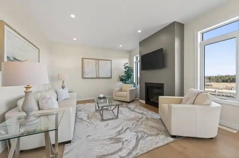 This stunning two storey home by Geertsma Homes sits in the heart of Riverstone, one of Belleville’s most desirable and thoughtfully designed communities. In Riverstone trails connect seamlessly making outdoor recreation an everyday experience. Featuring 2,374 sq.ft. of well planned living space this home is designed for modern family living with elevated comfort and style. Step inside to discover a spacious, light filled layout featuring 9′ ceilings on the main floor, a formal dining room and a beautiful kitchen showcasing quartz countertops, stainless steel appliances and a massive pantry. The adjacent living room includes a natural gas fireplace to cozy up to on those long winter nights. On the second floor a true primary retreat awaits complete with five piece ensuite bathroom and large walk in closet. The second floor also includes three additional spacious bedrooms, a fabulous main bathroom and a convenient second floor laundry room. The home is finished with an unspoiled walkout basement complete with basement bathroom rough in and attached two car garage with inside entry.