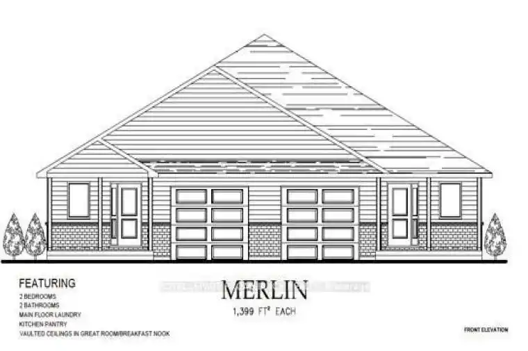 **Open House on the 25th cancelled due to weather** McDonald Homes is pleased to announce new quality homes with competitive Phase 1 pricing here at Brighton Meadows! This Merlin model is a 1399 sq.ft 2 bedroom, 2 bath semi detached home featuring high quality laminate or luxury vinyl plank flooring, custom kitchen with peninsula, pantry and walkout to back deck, primary bedroom with ensuite and double closets, main floor laundry, and vaulted ceiling in great room. Economical forced air gas, central air, and an HRV for healthy living. These turn key houses come with an attached single car garage with inside entry and sodded yard plus 7 year Tarion Warranty. Located within 5 mins from Presquile Provincial Park and downtown Brighton, 10 mins or less to 401. Customization is possible. The Ontario and Federal governments have, or are proposing to, rebate the HST to qualifying First Time Home Buyers (FTHB) who purchase a new home. For example, a FTHB who buys a new $500K townhouse could qualify for a $65K rebate from the governments previously mentioned. Worth checking out!