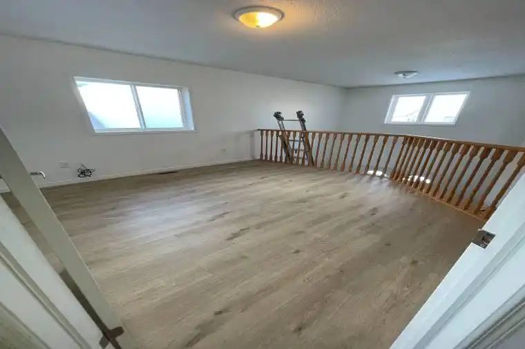 Three-bedroom, open-concept home offering a bright and spacious layout. Currently being updated with fresh paint throughout-ceilings, walls, and trim-along with new flooring. Available for possession February 9th. Features include a double car garage with inside entry, unfinished basement, and main-floor laundry. The upstairs offers three bedrooms plus an open loft, ideal for a home office, and a primary bedroom with ensuite. New vinyl flooring throughout the main floor and entire upper level, with brand-new carpet on the stairs. Enjoy a fenced backyard with a deck, perfect for outdoor living. The home is still being worked on but is available for viewing.