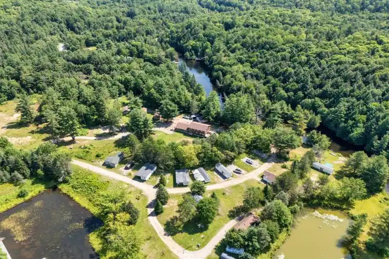 Exceptional residential and/or commercial possibilies and opportunities abound on this unique, 10+ acre waterfront property with 1,200′ on the Hollow River that has navigable boat access to MUSKOKA’S esteemed LAKE OF BAYS. Introducing a rare chance to own a piece of Cottage Country’s iconic, maturely treed landscaped gems, located just minutes from the charming town of Dorset, Ontario. Currently home to the historic “Hollow Valley Resort” is now being offered for sale as a turnkey resort and land asset investment with lots of potential to expand the business under C3-3 zoning. This offering includes the land, a spacious and renovated main lodge of 4,000+ sq ft with 7 rentable bedrooms (each with their own ensuite bathrooms), large septic system, drilled well and all 12 existing buildings on site (with newer roofs). There is significant potential to have up to 30 cabins and future development. This 4~season property is currently undergoing a thoughtful revitalization, together with the vision of restoring it into a premier 5-star resort destination. Muskoka-Haliburton tourism is growing steadily year after year and the supply of waterfront properties becoming increasingly scarce, so now is the time to secure your place in one of Ontario’s most desirable regions. Whether you’re looking to hold for appreciation, develop, continue operating as a resort or retreat, OR use as an extended FAMILY COMPOUND, this is a land opportunity you won’t want to miss. For visionary investors only, this is your chance to own an irreplaceable part of Cottage Country. Enjoy 1000’s of acres of crown land nearby, scattered with trails for activities associated with each of the seasons! Begin your own story and memories here! Located 2.5 hours from Toronto.