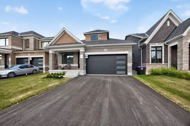 This brand new, never-lived-in 2-bedroom, 3-bathroom bungalow offers modern comfort in a charming country setting. Attractive curb appeal and a spacious front porch welcome you home. Inside, you’ll find 9-foot ceilings, 8-foot doors, and hardwood floors throughout most of the home. Both bedrooms feature private ensuites, and the open-concept kitchen and living area includes solid surface countertops and a walkout to a deck with peaceful views of surrounding pastures. Located in a quiet rural community just minutes from Tottenham, Alliston, and Beeton.