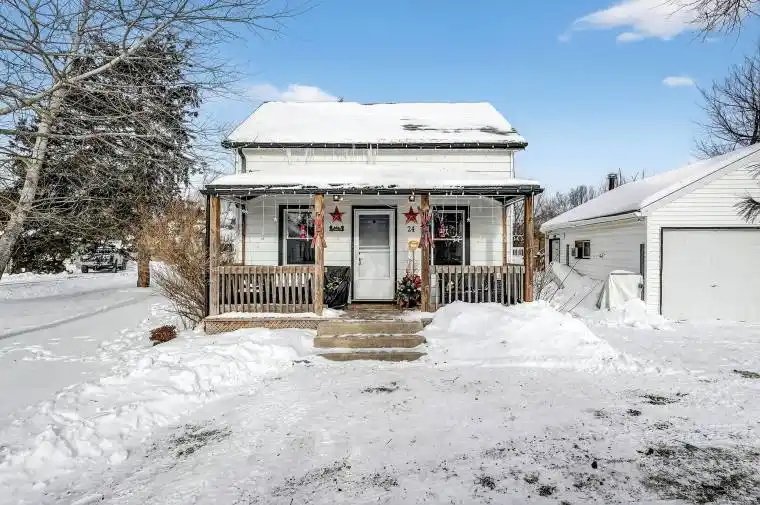 Welcome home to 24 Margaret Street, located on a quiet dead end street in the desirable community of Port Robinson. This charming home sits on an expansive oversized lot measuring 113 x 190 and is surrounded by mature trees and even features two small ponds. This home offers privacy and a peaceful setting that is truly one of a kind! This home is equipped with two bedrooms and one bathroom and provides a comfortable and functional open concept layout perfect for first time buyers, downsizers or anyone looking for privacy and room to grow. Stepping inside you’ll appreciate the convenience of multiple entrances including front, side, and rear access that makes everyday living simple and easy. A covered front porch provides the perfect spot to relax and enjoy the quiet surroundings after a long days work. The main floor offers a warm and welcoming living space and an updated kitchen complete with quartz countertops, a farmhouse sink, an island and plenty of countertop space for cooking and hosting family and friends. Major updates have already been completed including roof (2018), furnace (2020), hot water tank (2015), and A/C (2023) that provides peace of mind for the next homeowner. Outside is where this property truly shines. The detached two car garage is equipped with hydro and a wood burning stove. The perfect place for a workshop, storage and year round use. The backyard is an entertainer’s dream! Outside you’ll find an above ground pool with decking and endless space for the kids to play and enjoy. A seacan with hydro and two shed provides additional storage. Located in Port Robinson, this home is centrally located to all major city and highways that allows you to enjoy so many amenities while still feeling tucked away in your own peaceful and private sanctuary. Properties like this don’t come along very often! 24 Margaret Street is one you truly need to see in person. You will not be disappointed!