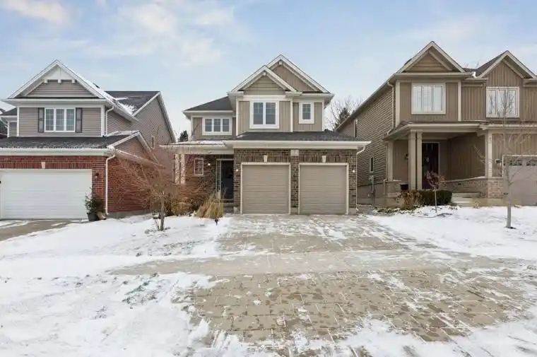 Built by renowned Doug Tarry Homes, this beautifully designed residence is set in a highly desirable, family-oriented neighborhood. Offering 3 bedrooms and 2.5 bathrooms, the home features a contemporary open-concept layout with a sun-filled kitchen, walk-in pantry, and an oversized island ideal for entertaining. The dining area opens onto a large deck equipped with a gas BBQ line, while the living room showcases custom built-in cabinetry. A walkout basement provides added versatility and future potential. Conveniently located within walking distance to schools, parks, trails, and everyday amenities, and just minutes from Highway 401 for easy commuting.