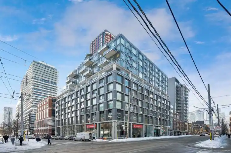 Live in a coveted boutique building with the city at your doorstep. This rare corner suite offers 2 bedrooms, 2 bathrooms, and 873 sq ft of well-designed living space. Floor-to-ceiling windows flood the home with natural light and showcase sweeping panoramic views. Enjoy a large, usable balcony with a natural gas BBQ, plus an additional Juliet balcony for extra light and fresh air. The chef-inspired kitchen features a natural gas range, stone backsplash, and a modern waterfall island. Includes parking and a private locker. With a Walk Score of 99, you are steps to the St. Lawrence Market, Financial District, Distillery District, streetcar, and a grocery store across the street. A rare downtown offering that blends style, comfort, and convenience.