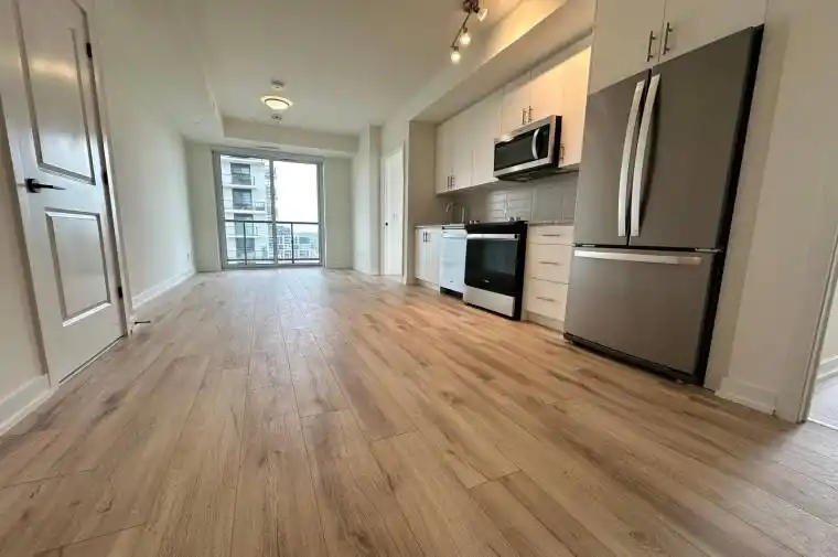 Bright and modern 1 bedroom plus den condo apartment for lease in the heart of Oakville’s vibrant Dundas & Trafalgar community, ideally suited for working professionals. This well-designed suite offers lake-facing views of Lake Ontario and features an open-concept kitchen with stainless steel appliances, quartz countertops, tile backsplash, and modern cabinetry, seamlessly combined with the living and dining area. The living room walks out to an open balcony, perfect for unwinding after work. The den can be used as a second bedroom or a home office. Includes 1 washroom, ensuite washer and dryer, and one parking spot. Heat, water, and internet are included; hydro is extra. Enjoy access to electric vehicle charging stations and a prime location minutes to public transit, Sheridan College, and shopping including Longo’s, Walmart, and Homesense, with easy access to the GO Station and highways 403, 407, and QEW.