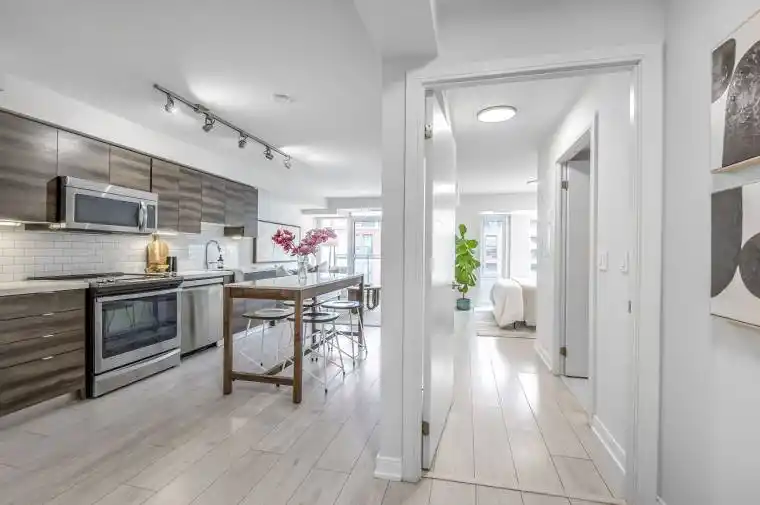 Love the energy of King West but want a quiet escape? This stunning 1+den, 2-bath condo in a well-managed building with low maintenance fees offers the best of both worlds. Tucked into a peaceful pocket with park views, yet steps to King Street’s buzz, it features a smart, no-wasted-space layout perfect for entertaining. Enjoy an open-concept living area with quartz counters and full-size stainless steel appliances, a spacious primary bedroom with ensuite, and a fully enclosed den ideal as a second bedroom or home office. Thoughtful upgrades include a full-size washer/dryer, custom closet organizers, mirrored closet doors, updated lighting (2023), and a newer dishwasher (2024). Steps to the future Ontario Line, top restaurants, cafes, shops, Trinity Bellwoods, the waterfront, and more. Incredible amenities include a pool, gym, party rooms, media room, saunas, steam room, and rooftop terrace with BBQ. Parking & locker included. A true King West lifestyle opportunity.