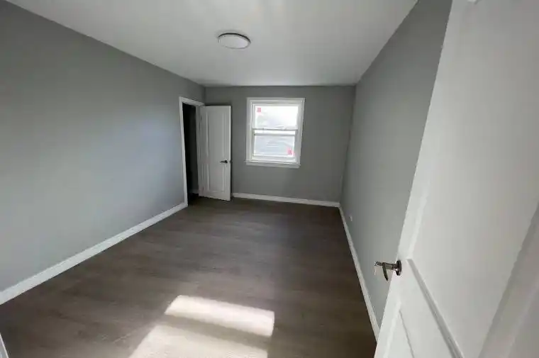 Newly Renovated Upper-Level Apartment featuring a separate private entrance and approximately900 sq ft of living space. Laminate flooring throughout. Bright kitchen with stainless steel appliances and a large window. Private laundry area included. Two bedrooms plus a living room, which can also be used as a third bedroom. Tenant responsible for all utilities. No parking available.