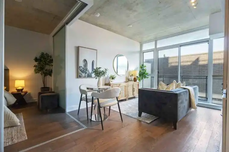 Attention first-time home buyers and savvy real estate investors! Welcome to this bright and modern 1-bedroom, 1-bathroom condo for sale in the heart of Leslieville, offering exceptional lifestyle appeal and strong rental potential. This carpet-free condo features floor-to-ceiling windows, filling the space with natural light, and a functional open-concept kitchen ideal for everyday living and entertaining. The generously sized bedroom comfortably fits a king-size bed and includes wall-to-wall closet space for ample storage. Step outside to your private balcony, perfectly positioned to enjoy peaceful morning light and seamless indoor-outdoor living. Located in the pet-friendly Carlaw building, home to Crow’s Theatre and the popular Piano Piano restaurant, residents enjoy premium amenities including a 24-hour concierge, fully equipped fitness centre, and a rooftop terrace with BBQs and breathtaking city views. This condo is steps to Leslieville’s best cafés, restaurants, and shops, including Dineen Coffee, Bonjour Brioche, Good Neighbour, and more. With easy access to transit, parks, and downtown, the location is unbeatable.