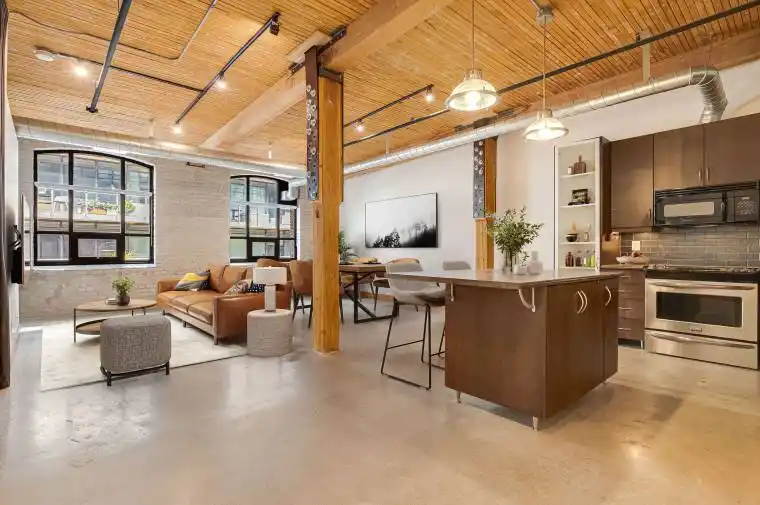 Welcome to the Iconic Broadview Lofts. Come home to Industrial Posts & Beams, Soaring Slat Wood Ceilings, Exposed Brick, Factory Style Windows, Polished Concrete Floors and Exposed “Industrial-Style” Ductwork. This layout is rare with a bedroom and a den for those wanting to work from home. Parking and a locker are included for your exclusive use!