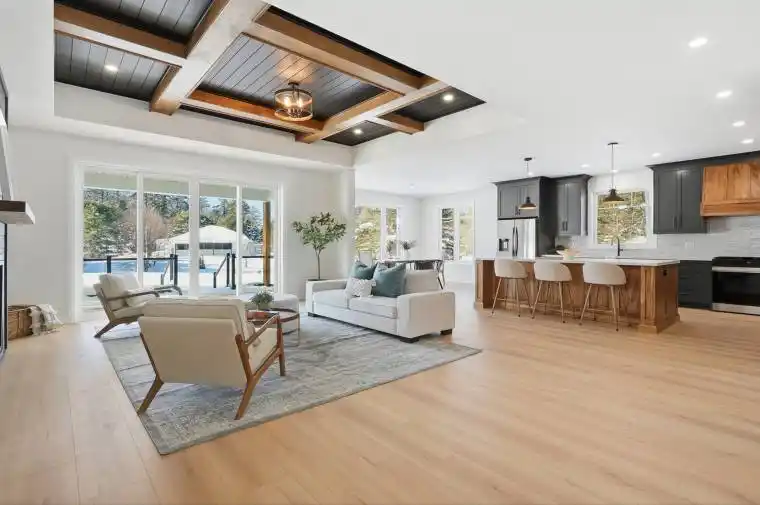 Welcome to this stunning new-build home that perfectly blends refined craftsmanship with bright, open living. Featuring 3 spacious bedrooms and 2 beautifully appointed bathrooms, this home showcases thoughtful design throughout-highlighted by elegant coffered ceiling details, a cozy gas fireplace, and a striking wood-detailed island and custom range hood that anchor the open-concept living space. Large windows flood the home with natural light, creating a warm and inviting atmosphere ideal for both everyday living and entertaining.The functional layout includes a mudroom off the 2-car garage, convenient main-level laundry, and a butler’s pantry that offers flexible use as additional storage or a stylish coffee station. The private primary suite is a true retreat, complete with a generous walk-in closet and a spa-inspired ensuite featuring beautiful finishes, a separate shower, and a relaxing tub. Two additional bedrooms are equally bright and welcoming, each filled with natural light.Downstairs, the large unfinished basement offers endless potential, enhanced by oversized windows that bring in exceptional light-perfect for future living space, a gym, or recreation area. Set among neighbouring homes yet offering a strong sense of privacy, this property is ideally located just 15 minutes from both Huntsville and Bracebridge, providing easy access to amenities while enjoying a peaceful setting. A thoughtfully designed home where comfort, style, and location come together seamlessly. You are invited to come have a look!