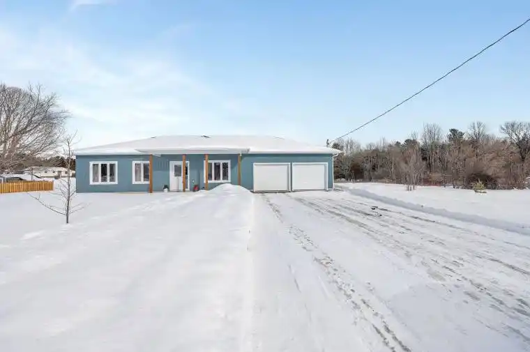 Welcome to modern country living just north of Prescott and only 50 minutes to downtown Ottawa, where comfort, space, and simplicity come together on a beautifully sized 1.54-acre lot. Built in 2022, this thoughtfully designed bungalow offers the ease of single-level living with no stairs, making it ideal for small families and perfectly suited for downsizers seeking room to breathe. The bright open-concept main floor is finished with durable luxury vinyl flooring and oversized windows that flood the home with natural light. The stylish kitchen is the heart of the home, featuring quartz countertops, a large central island perfect for gathering, and ample cabinetry for storage and everyday function. Three well-proportioned bedrooms and two full bathrooms provide flexibility and comfort, including a spacious primary bedroom with a walk-in closet and private ensuite featuring a practical bathtub and shower combination. The main bathroom is designed with accessibility in mind and includes a shower with built-in seating. The home is built on a slab and includes radiant floor heat tubing already in place, allowing a future owner to complete the system if desired. Heating and cooling are efficiently handled by a modern heat pump, with baseboard heaters providing reliable backup. The attached 22 x 23 foot garage is fully insulated and equipped with an automatic garage door opener and convenient floor drain, ideal for year-round use. With its peaceful setting, modern construction, and easy-living layout, this property offers the perfect balance of rural tranquility and proximity to city amenities. Don’t miss out on this beautiful home.